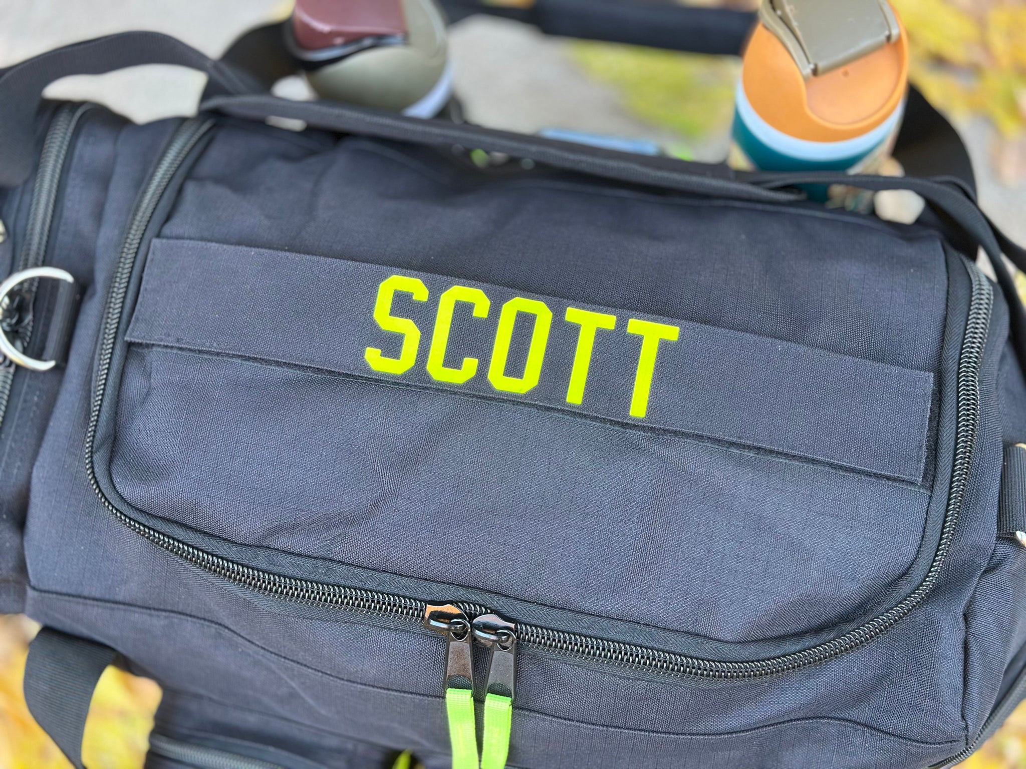 MAKE IT YOURS Your name printed right on top—because this bag means business, just like you.