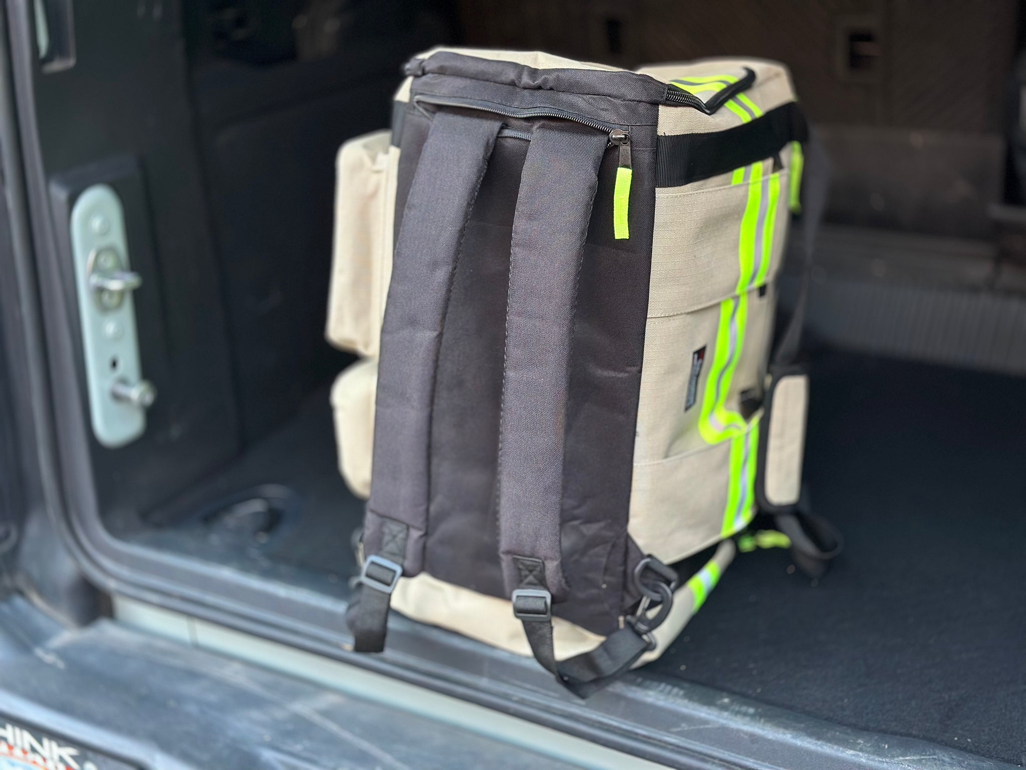 CARRY YOUR WAY Grab the reinforced shoulder strap for quick moves, or deploy hidden backpack straps when you're hauling your full loadout. A reflective safety stripe keeps you visible.